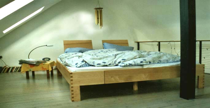 bett 2 x 2 m aus ahorn massivholz mit eingesteckten lehnen